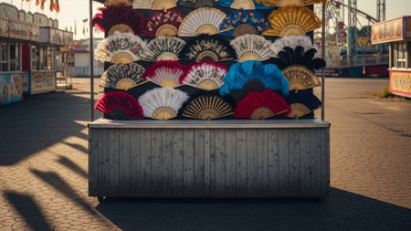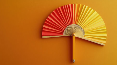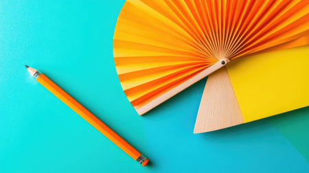 A vibrant scene featuring a colorful paper fan paired with an orange pencil against a bright background. Perfect for artistic inspiration and design projects.