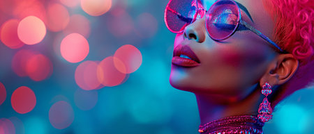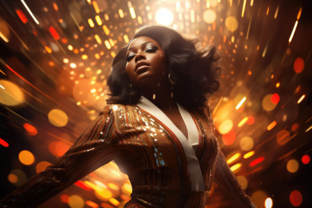 Beauty fashion model african american girl, bright shiny make-up and clothes in disco style. 80s-90s nostalgia concept,