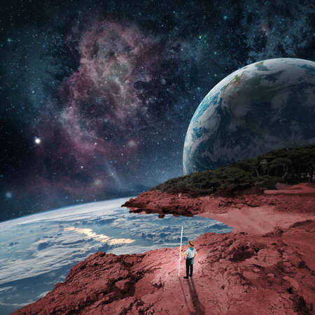 Modern design. Contemporary art collage. Concept of cosmos, outer space, imagination, inspiration