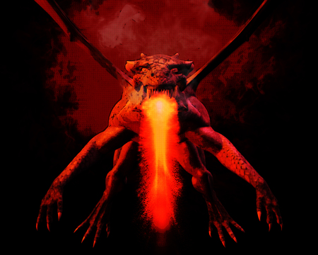 3D Illustration of a Dragon with Fire Flames in a Dark Background