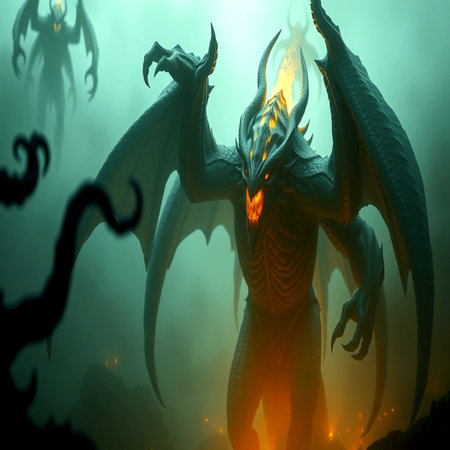 3d rendering of a demon in the dark with a lot of fire