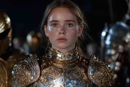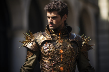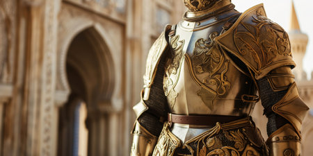 gold crown on a knights suit-of-armor in a castle, created with generative ai