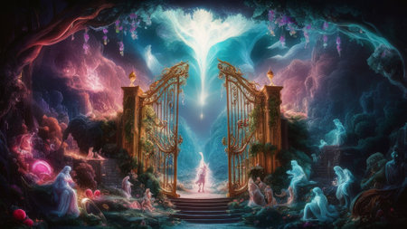 An abstract Garden of Eden that creates an atmosphere of calm and tranquility, captivating you into the world of colored dreams. AI generated.