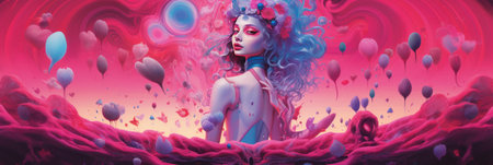 landscape filled with psychedelic colors, shapes, and patterns that alter perception and reality.