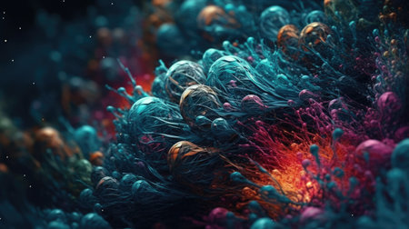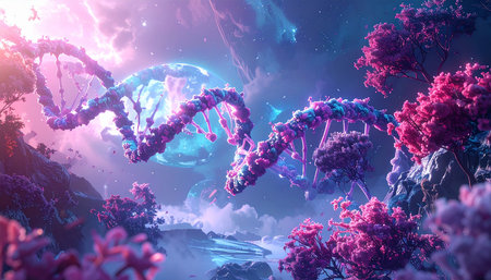 a microscopic view of a vibrant cellular world with DNA strands intertwining
