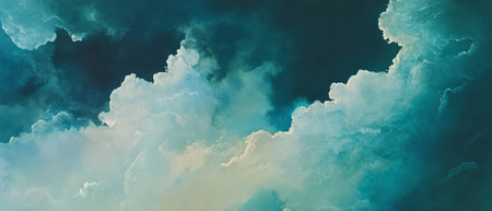 A stunning portrayal of fluffy clouds set against a turquoise sky, creating a dramatic and tranquil atmosphere perfect for artistic and scenic themes.