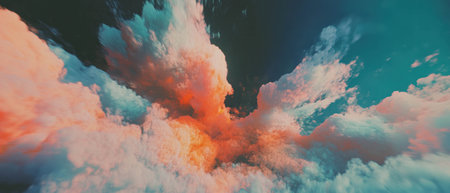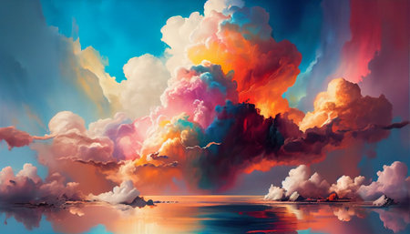 abstract cloud formation is characterized by bold, contrasting colors and shapes, creating a sense of otherworldliness. colors and shapes blend together seamlessly to create an immersive and surreal