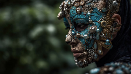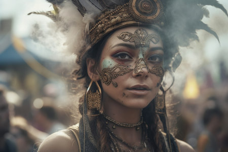 Indigenous beauty in traditional clothing celebrates spirituality with elegance and mystery generated by artificial intelligence