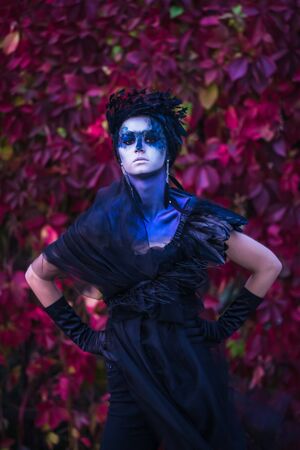 Portrait of a young man in the autumn forest. Halloween.