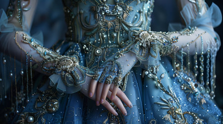 Intricately Embellished Blue Dress Worn by a Model at a Fashion Show Event