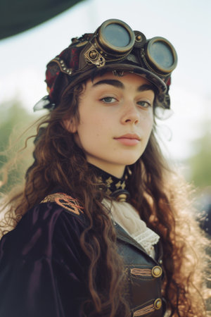 Close-up portrait of a beautiful steampunk woman. Retro style.