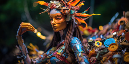 Recycle art statue in the street. Generative AI