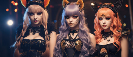 cybergoth nanopunks, girls futuristic shocking fashion, portrait, close