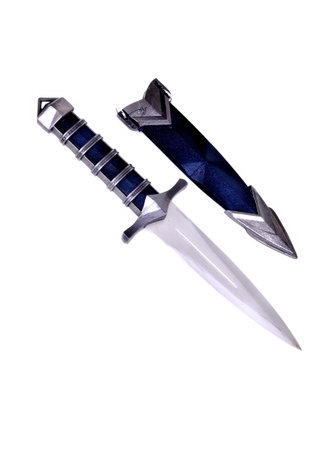 Small medieval dagger hilt and blade closeup diagonal on a white background