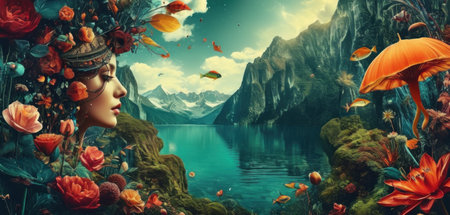 Surreal mindscape with flourishing thoughts