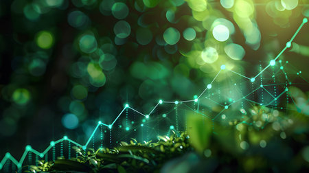 Green graphic illustration of business stock market bull run and growth with graph and diagram. Generative ai.