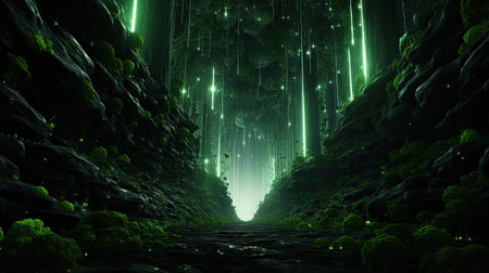 Fantasy green alien tunnel in a dark forest. 3D rendering