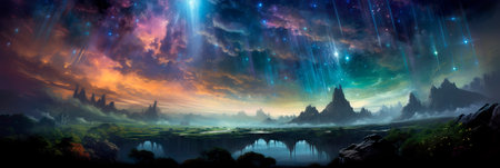 landscape of a starry magical night and its magical phenomena. Generative AI