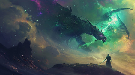 The man looking at a strange rainbow light rise in front of him., digital art style, illustration painting