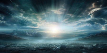 light beams shine through tv screen stock image, in the style of realistic seascapes, dark indigo and aquamarine