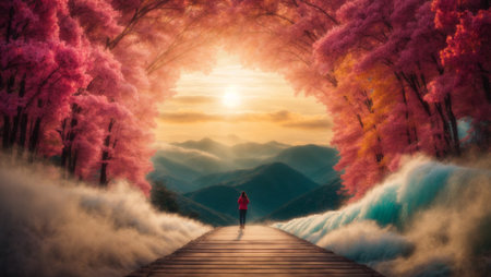 An abstract Garden of Eden that creates an atmosphere of calm and tranquility, captivating you into the world of colored dreams. AI generated.