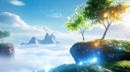 mystical floating island, with manga-style generative ai