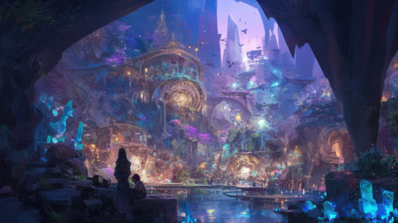 Lively enchanted marketplaces, bustling with magical artifacts and mystical creatures - Generative AI