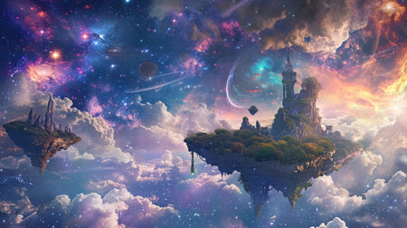 Celestial Dream, Nebula filled skies, floating islands, and enchanting star companions