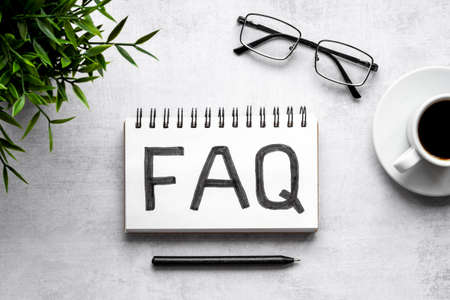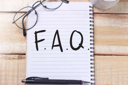 Faq, frequently asked questions text on notebook