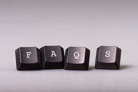 FAQs, Frequently Asked Questions, by pieces of computer keyboard, Faqs topic, and title