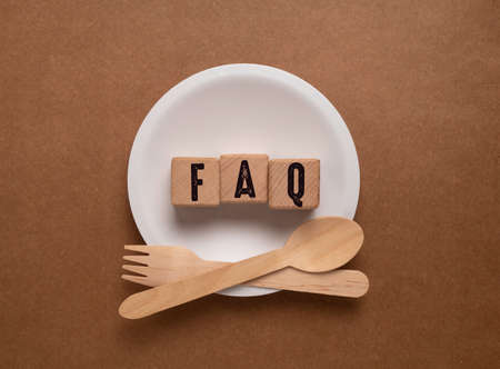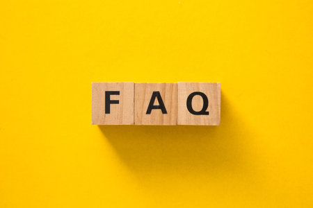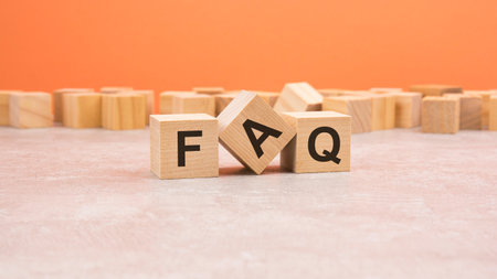 Wooden blocks spell FAQ on table