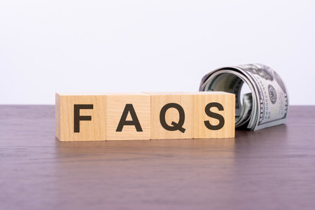 the word faqs on wood cubes and banknotes on the background, business and finance concept
