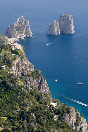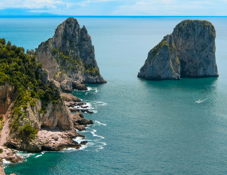 View of Capri (Campania, Italy) typical Faraglioni (sea stacks)