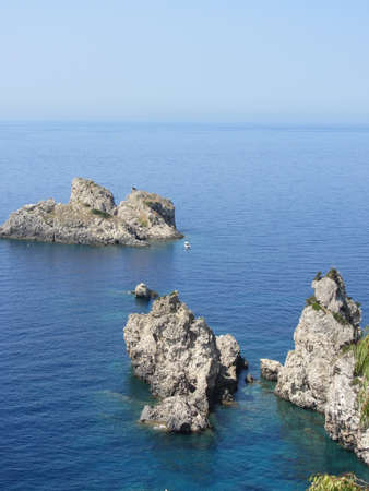 View from a cliff on the island of Capri, Italy, and rocks in the sea