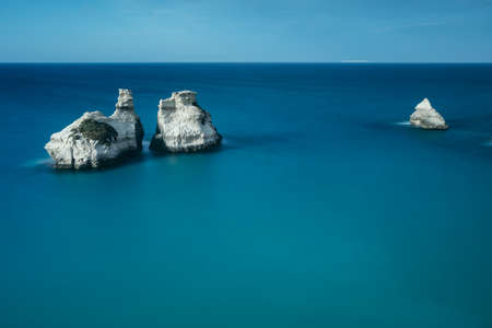 View at the Rock formation Due Sorelle in Torre del Orso on the shores of the Adriatic Sea in Italy