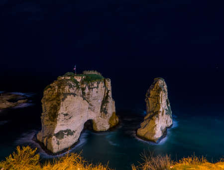 Pigeons' Rocks by night. In Beirut, Lebanon
