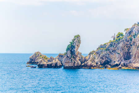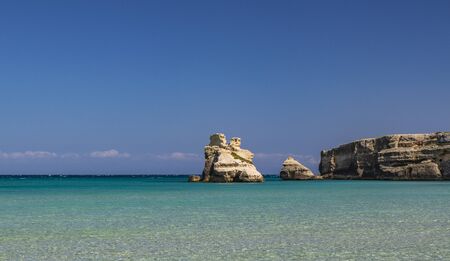 Rocky stacks of Santo Andrea on the coast of Salento in Puglia in Italy