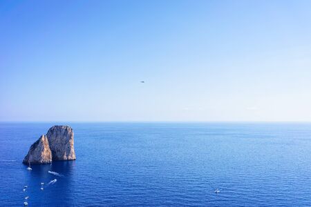 amazing Faraglioni cliffs panorama with the Tyrrhenian sea in background, Capri island, Campania region, Italy