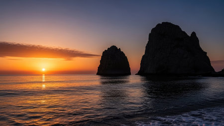 Coastal View of Capri with Sea Stack and Sunset Sky in Italy