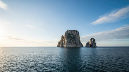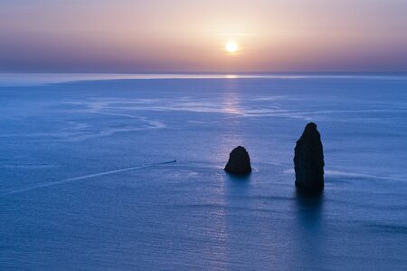 Faraglioni Rocks in the sea off the isle of Capri in the Bay of Naples