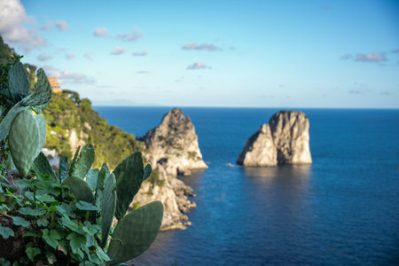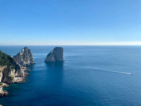 A beautiful view of the Faraglioni rocks on the island of Capri, Italy
