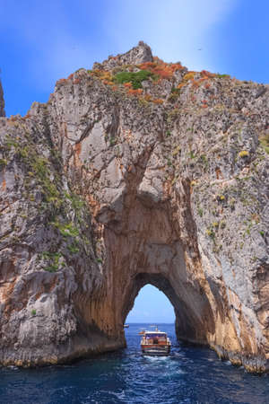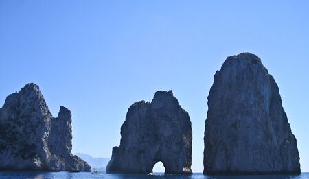 The Faragolini Rock Formations off the Island of Capri Italy from a boat.