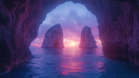 Faraglioni Rock Formations and Cliffs at Sunset in Capri, Italy
