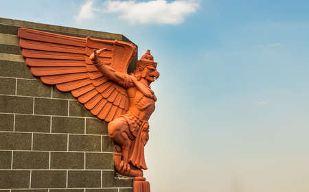 BANGKOK, THAILAND, 16 MARCH : Garuda statue at wall of Bangkok Bank building on 16 March 2019 in Bangkok, Thailand
