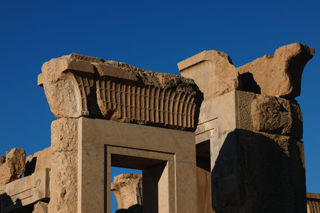 Ruins of the stone Gates in Persepolis, the ceremonial capital of the Achaemenid Empire, UNESCO declared the ruins of Persepolis a World Heritage Site in 1979.