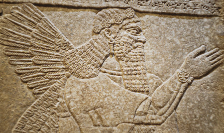 Ancient Babylonia and Assyria bas relief from king Ashurnasirpal Nimrud Palace