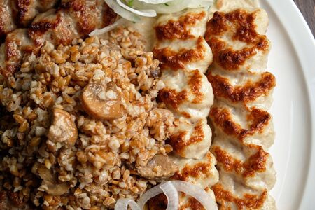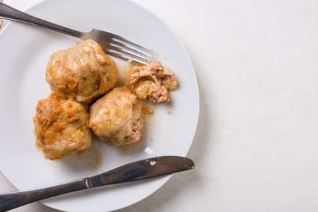 golubtsi Cabbage with rice and meat on a plate of buckwheat and carrots