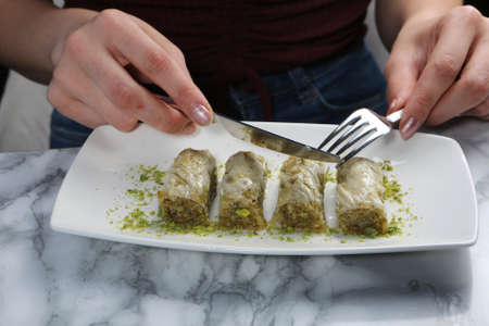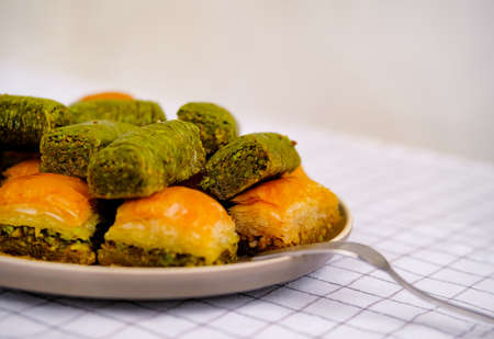 Traditional middle eastern, Turkish and Arabic sweet desert made of filo pastry and nuts