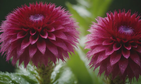 Close-up of a vibrant purple chrysanthemum flower with delicate droplets of water on its petals, showcasing intricate details and natural beauty.