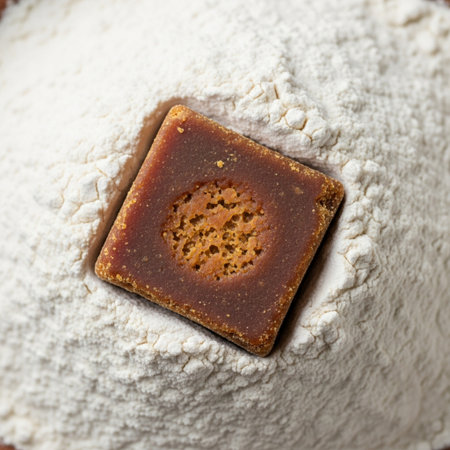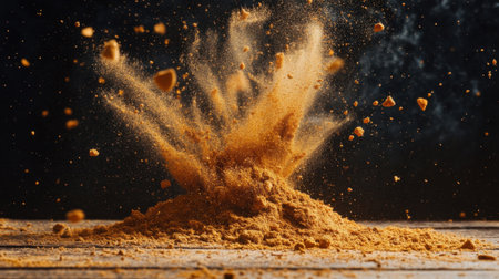 A stunning image capturing the dynamic explosion of fine powder against a dark background. This vibrant splash showcases texture and creativity perfect for culinary projects.
